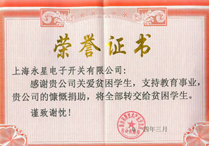 上海永星電子支持教育事業(yè)獲得頒獎。